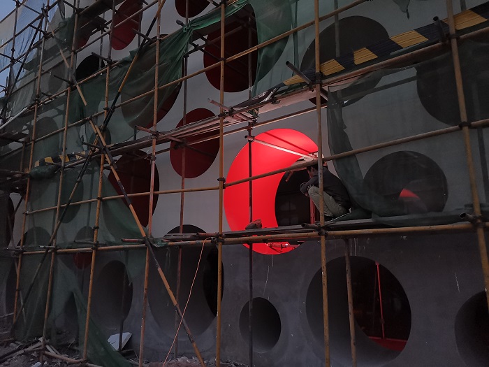 為最佳還原美術館正面圓形結構的顏色和整體形態(tài),信達電通采用照度4000k-4500k的投光燈。并在實施中根據(jù)樓體的實際情況不斷調(diào)試,調(diào)整燈具的位置和發(fā)光角度,以實現(xiàn)預期的照明效果。