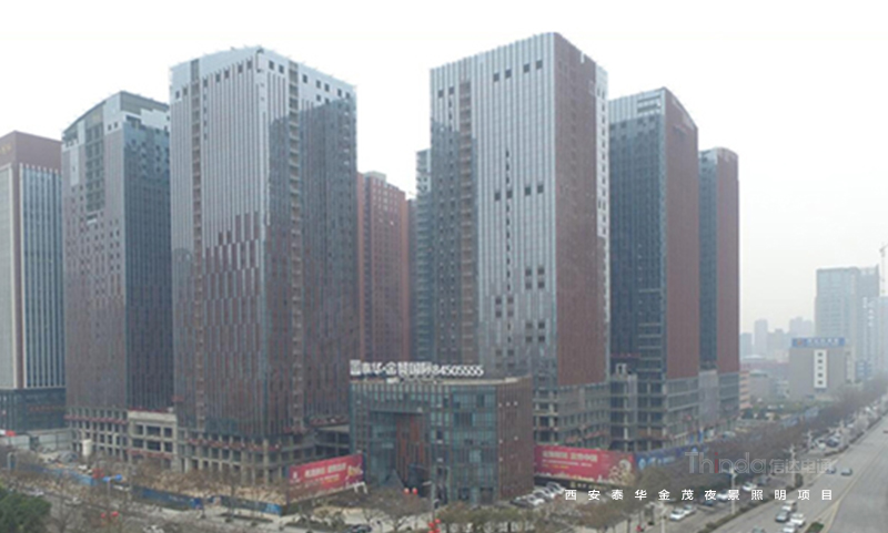 泰華·金貿國際位于西安高新區金融圈與商務圈的交匯地帶,與唐城墻遺址公園僅一路之隔。有西安首創山水云陶筑玻璃幕墻,高端商務會所,啟封現代商務的新風范。信達根據辦公樓的戶外亮化照明設計要素和泰華·金貿國際建筑景觀特點以及所處的地理位置,對泰華·金貿國際進行戶外亮化照明設計改造工作。改變了泰華·金貿國際之前的色系昏暗現狀,增加了建筑的外立面整體效果及廣告照明的效果,洗亮泰華·金貿國際建筑頂部,凸顯天際效果,使泰華·金貿國際成為西安夜色下一道亮麗的風景。